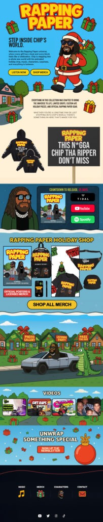 We partnered with Chip Tha Ripper to expand his presence from artist to architect of a cultural movement. The focus was to honor a legacy built over time while translating it into a structured, scalable brand experience. We developed a narrative that positions Chip not just as a musician, but as a creator of moments, movements, and products that live beyond releases.